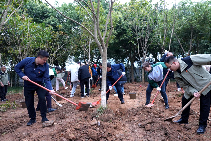 春回大地万物苏,植树添绿正当时。在第48个植树节来临之际,为深入践行“绿水青山就是金山银山”的生态文明理念,充分发挥党员在生态文明建设中的先锋模范作用。3月12日上午,中江公司党支部联合德阳市生态环境局机关党支部、中江生态环境局党支部、县融媒体中心党总支、大北街社区党总支,共同开展“党旗红”引领“生态绿”—2026年植树节暨支部共建主题党日活动。五家党组织的50余名党员代表齐聚一堂,以实际行动为美丽中江增添新绿。