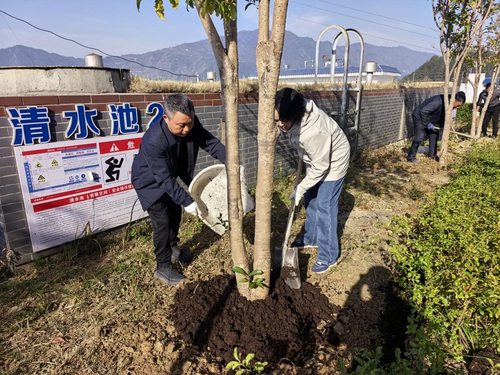 为深入贯彻习近平生态文明思想,深化落实清流铸魂·水润万家党建特色品牌建设要求,312日上午,万源公司党支部在驮山水厂组织开展了以党建引领聚合力,植绿护水践初心为主题的植树节活动。活动由公司领导班子带头,全体党员及职工代表共同参与,旨在通过具体的生态实践,将品牌理念从纸面落到地面。